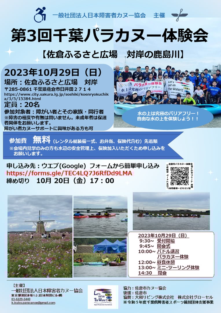 名称:第3回パラカヌー体験会in千葉