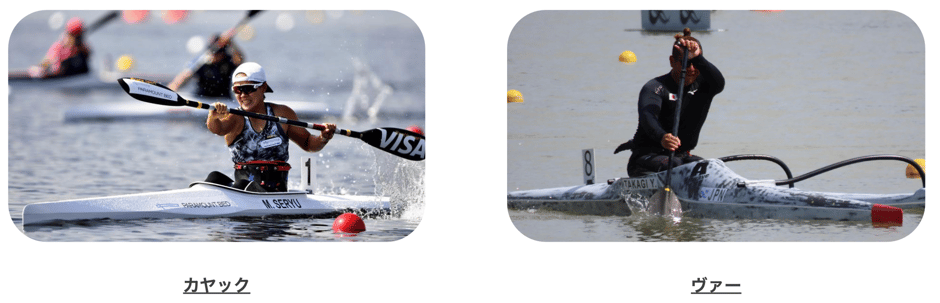 A. カヤック種目とヴァー種目があります。パラリンピックでは2016年リオ大会からカヤックが採用されており、東京大会よりヴァーが追加されています。
