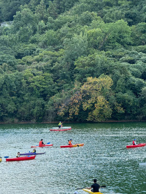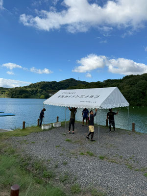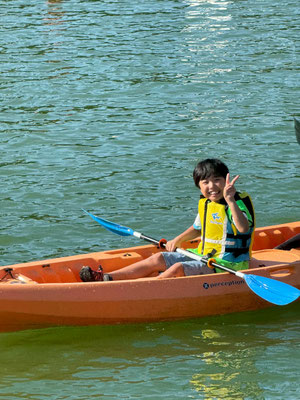 心配していた台風も大きく進路が外れ、快晴で真っ青な空の下、午前中の体験会を行いました。初めて乗るパラカヌーなのに歓声と笑い声がこだまし盛り上がりました。