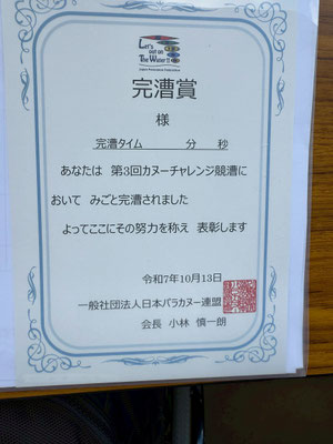 表彰式ではタイムが記載された完漕賞と副賞をいただき満面の笑顔でした。