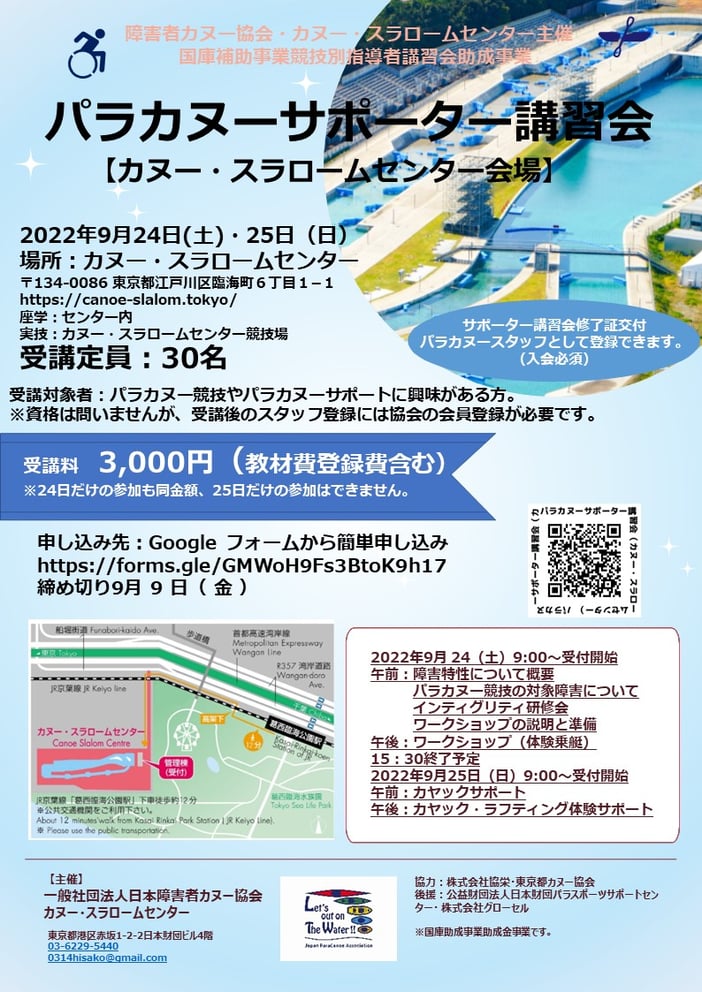 ※こちらは 9月24日25日連続講習【パラカヌーサポーター講習会in カヌー・スラロームセンター】の要項になります